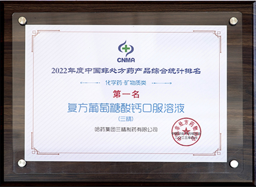 2022年度中國非處方藥產(chǎn)品綜合統(tǒng)計排名第一名復(fù)方鈣