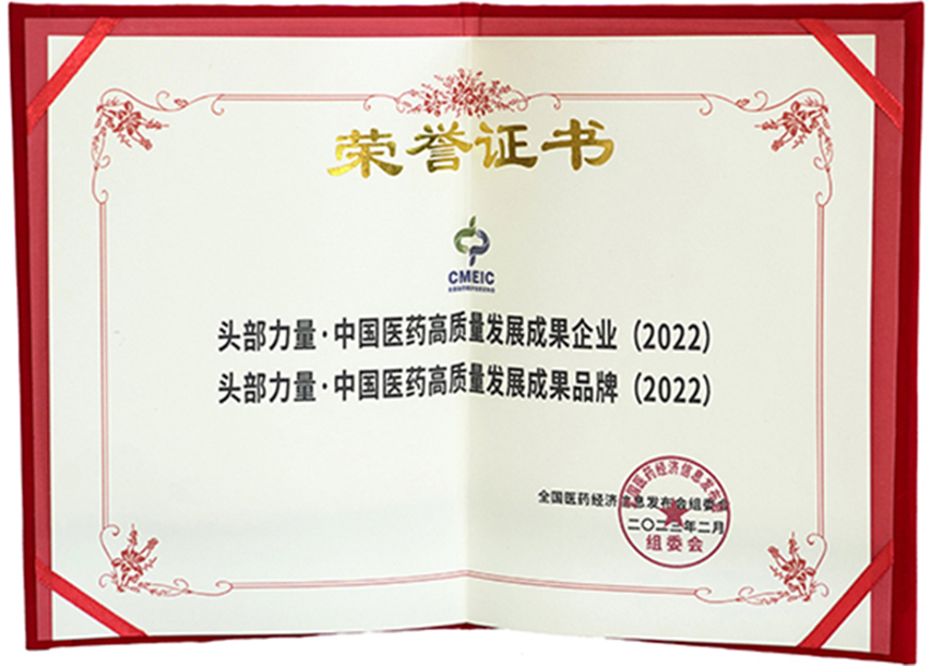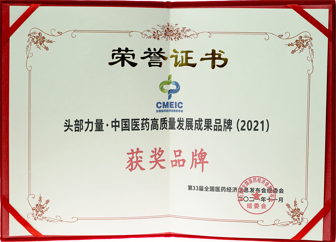 頭部力量中國醫(yī)藥高質(zhì)量發(fā)展成果品牌