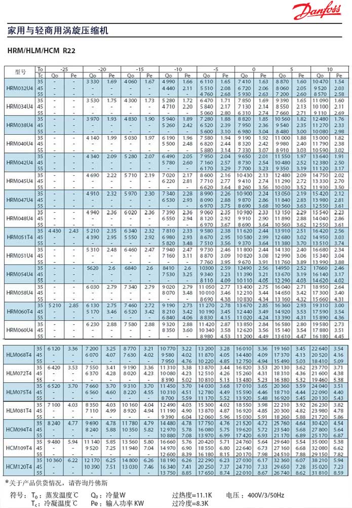 丹佛斯HRM/HLM/HCM (R22) 2.5HP-10HP